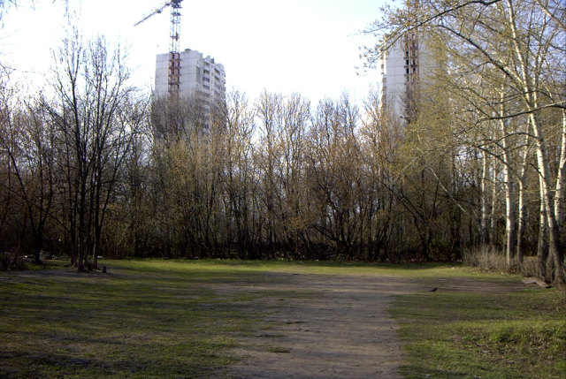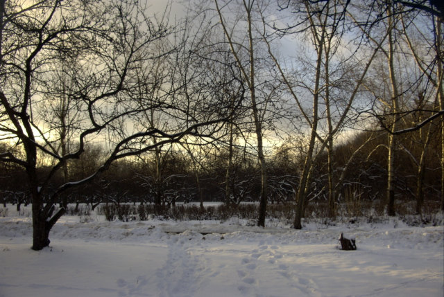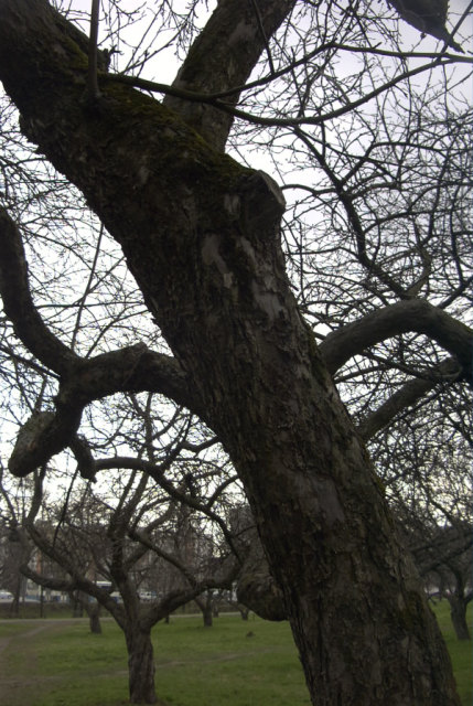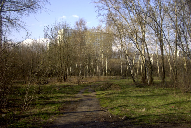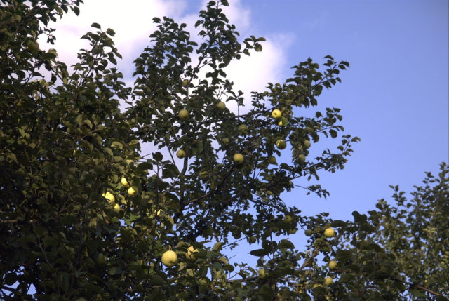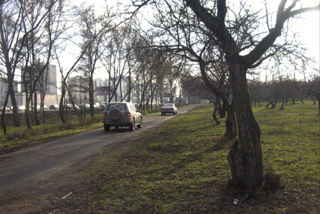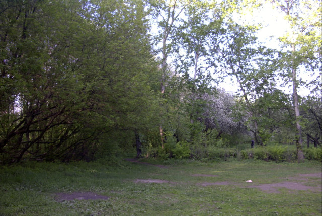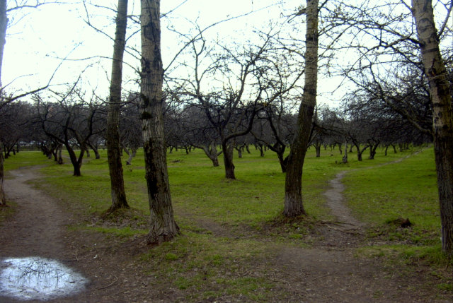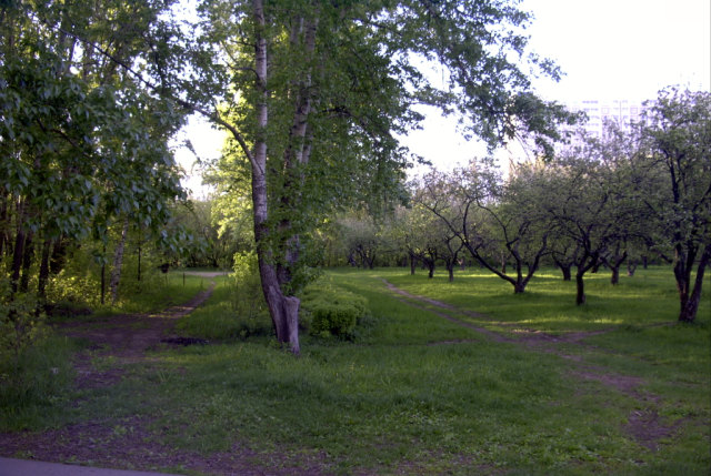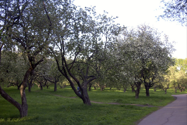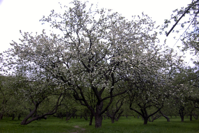Яблоневый сад и лесок рядом