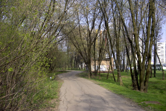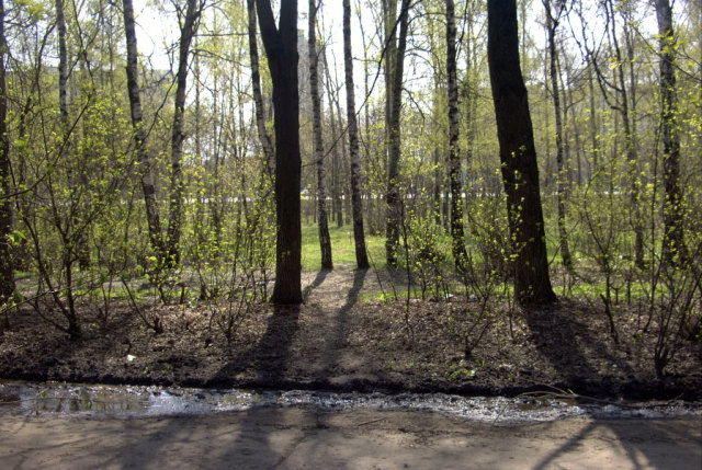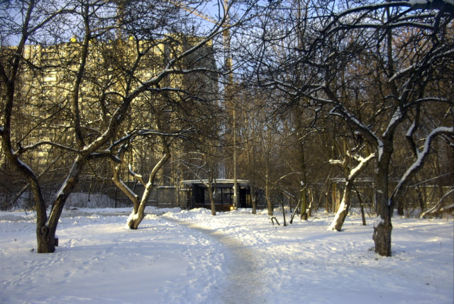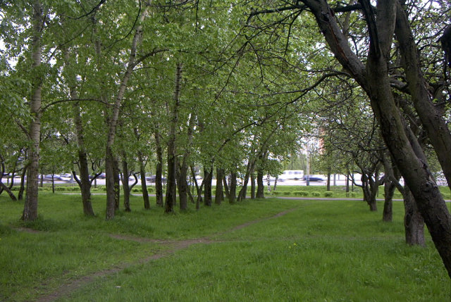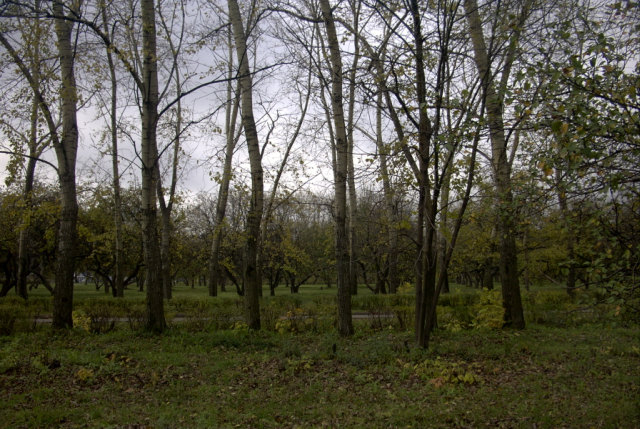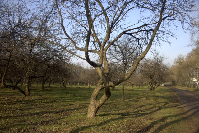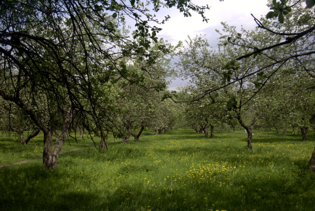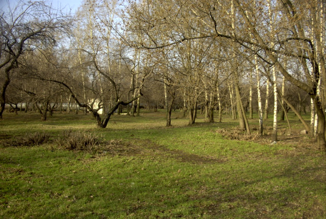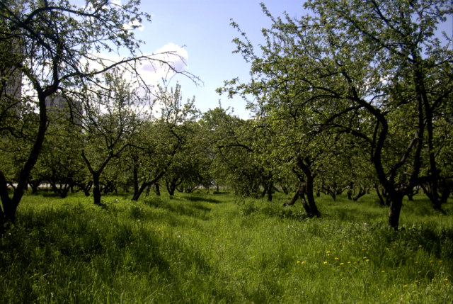 Яблоневый сад и лесок рядом