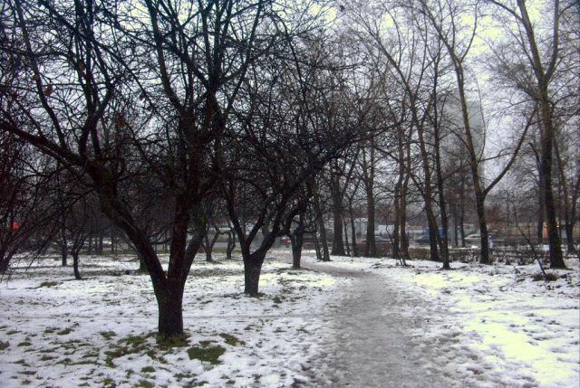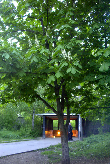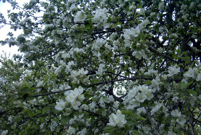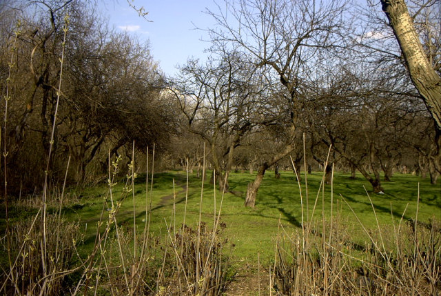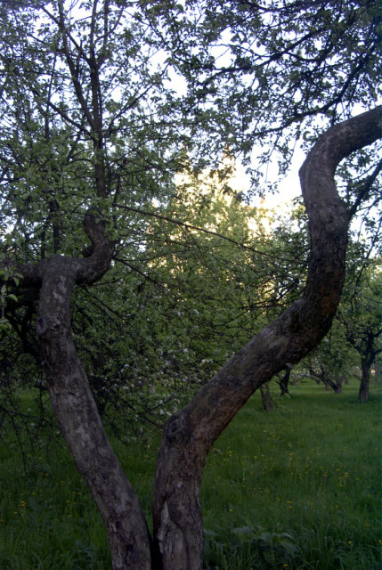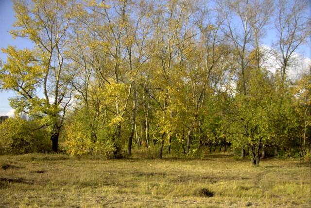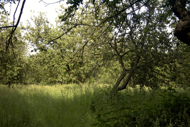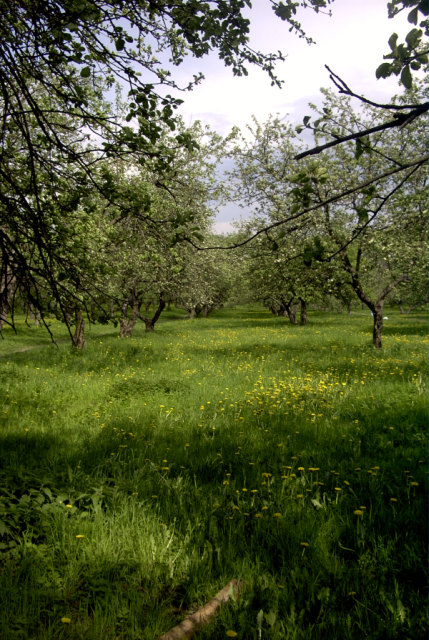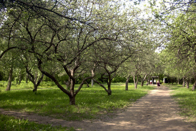 Яблоневый сад и лесок рядом